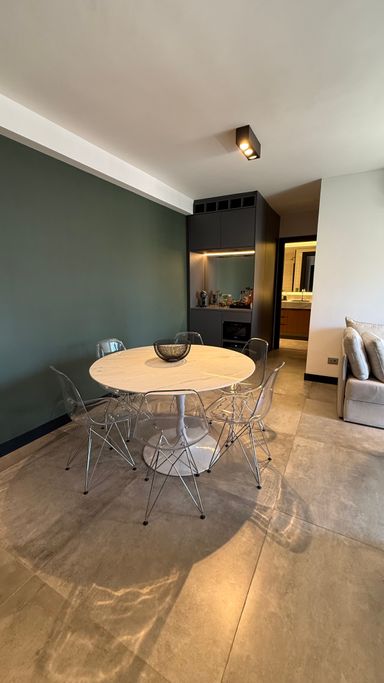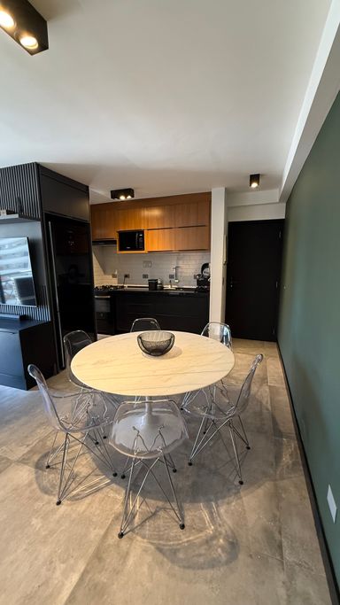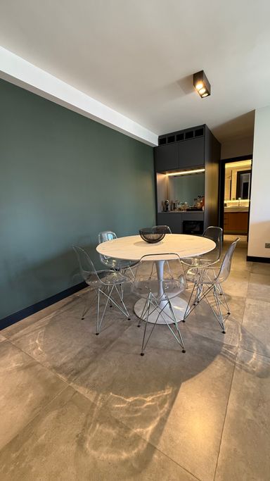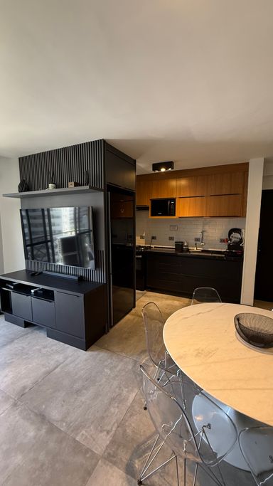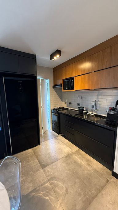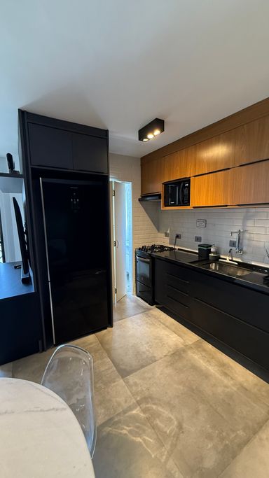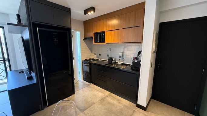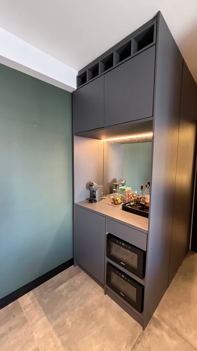 • O apartamento conta com armários planejados de excelente qualidade, mesa com cadeiras, micro-ondas, geladeira, fogão, ótimo armário no dormitório e duas adegas climatizadas para vinhos.