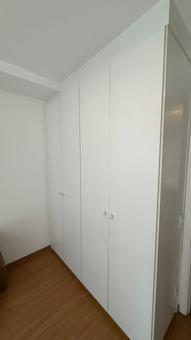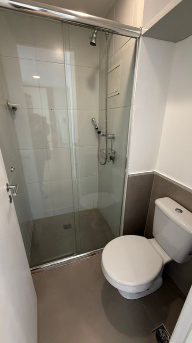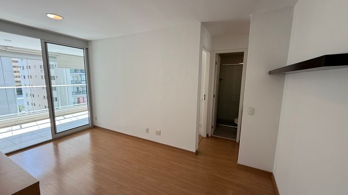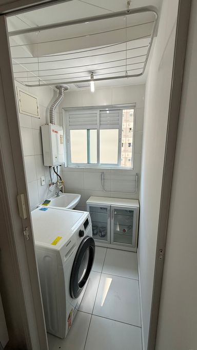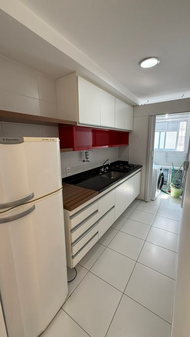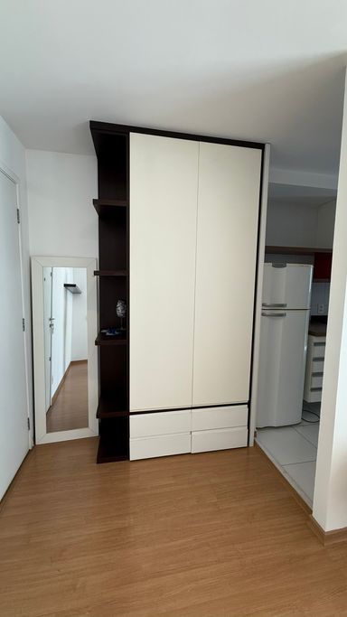Lindo apartamento de 1 dormitório, equipado com geladeira, cooktop e máquina de lavar.