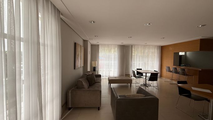 Piscina, academia, salão de festas, churrasqueira, playground e segurança 24h.