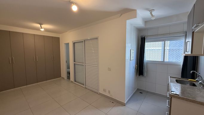 Apto studio na Rua Paim 285, excelentes armários com fechamento da sacada em vidros.