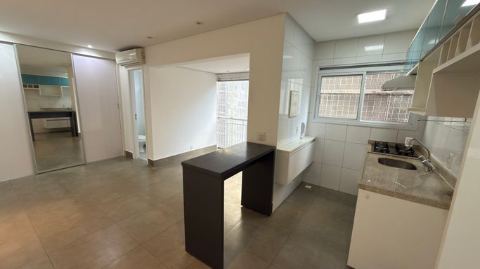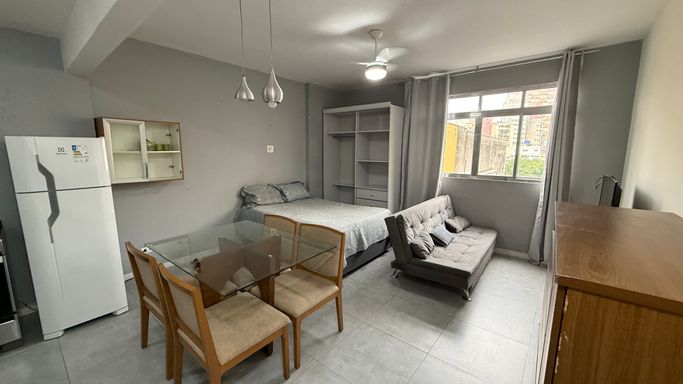 Studio moderno, muito bem distribuído, com ar-condicionado instalado, ambiente funcional e aconchegante, ideal para quem busca praticidade e conforto no dia a dia. Apartamento lindo, pronto para morar.