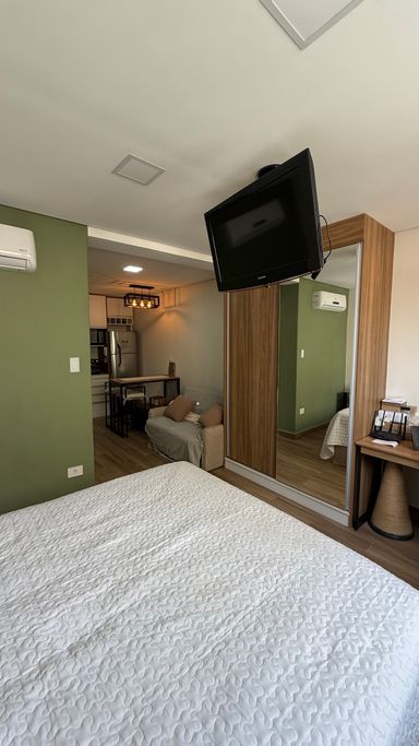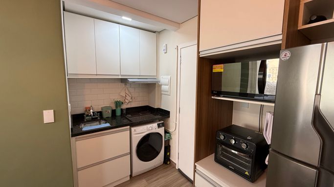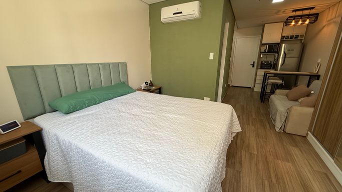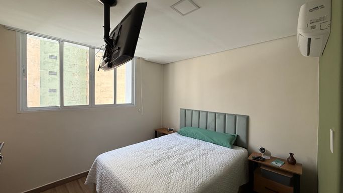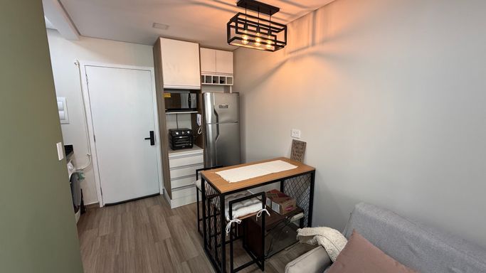 O apartamento está totalmente mobiliado e equipado, conta com ar-condicionado e oferece praticidade e conforto para quem busca morar no coração da cidade. 4 minutos caminhando até o metro Santa Cecilia.